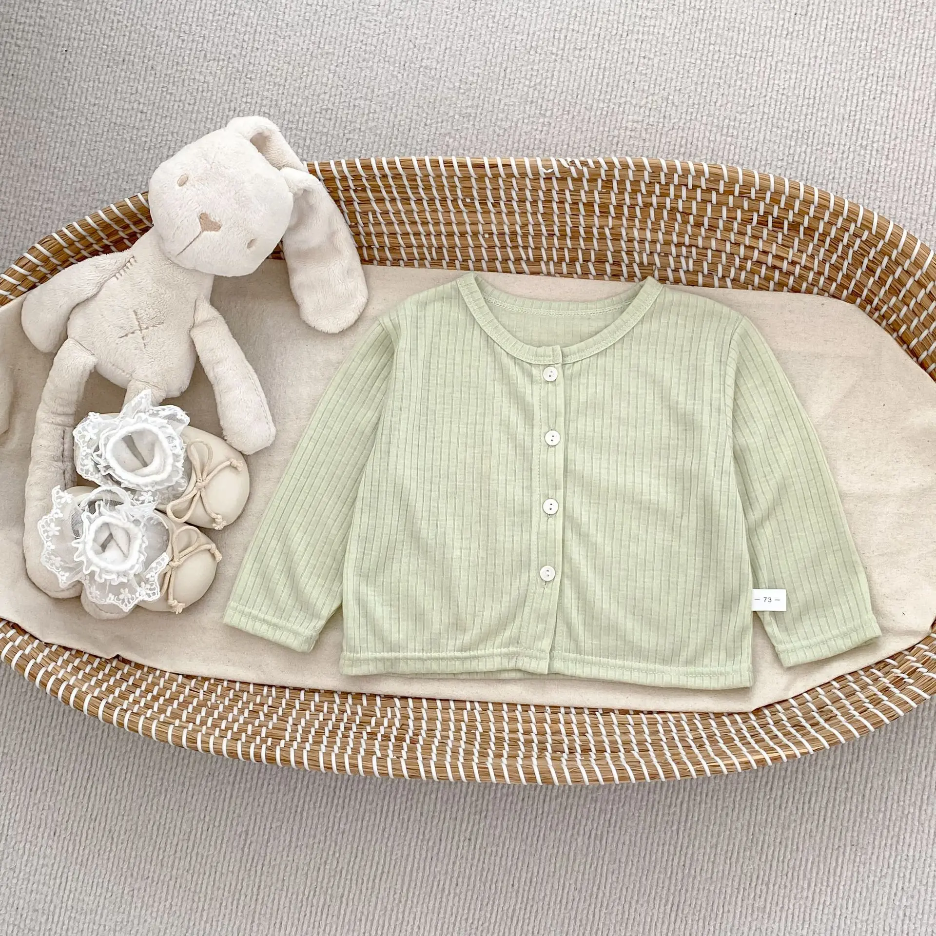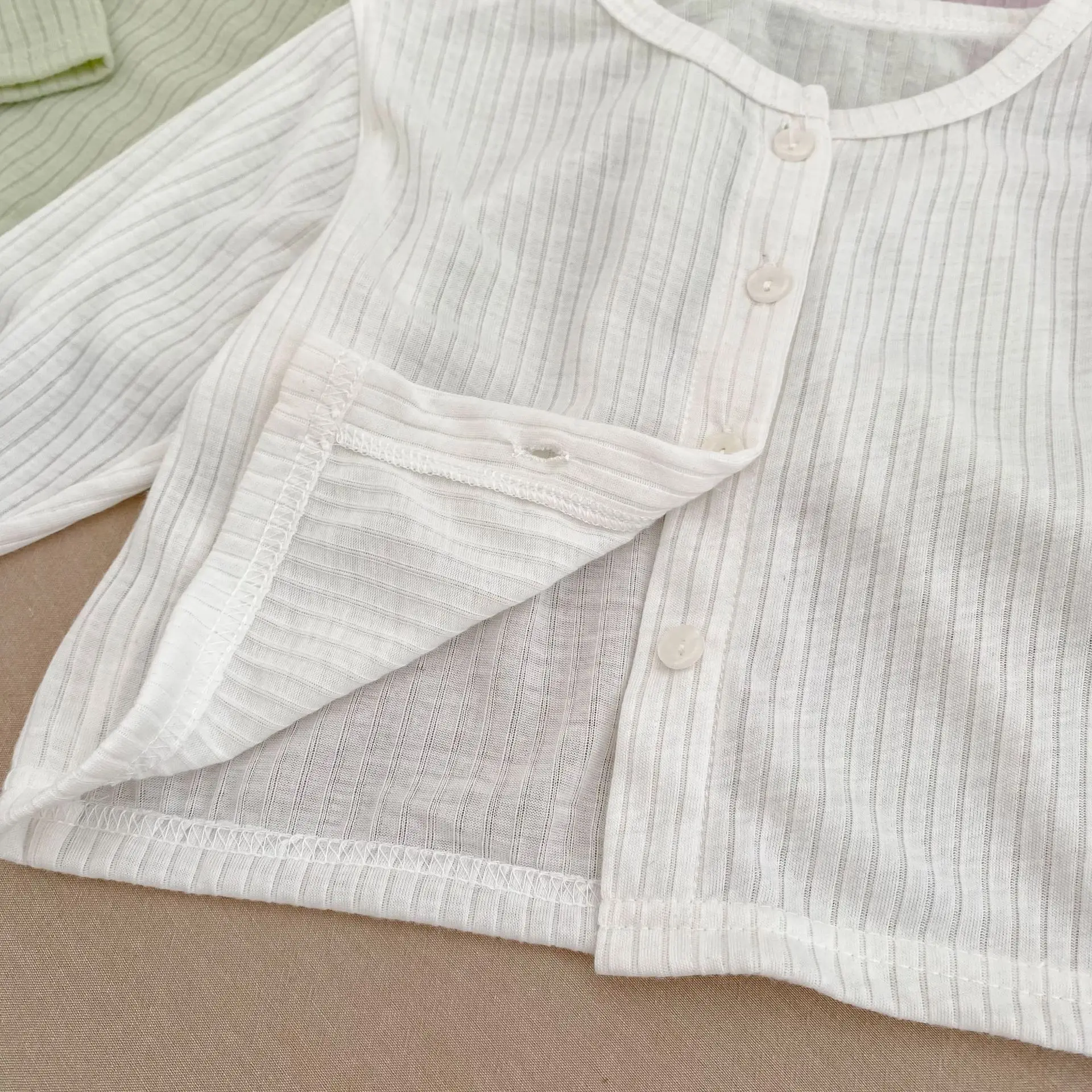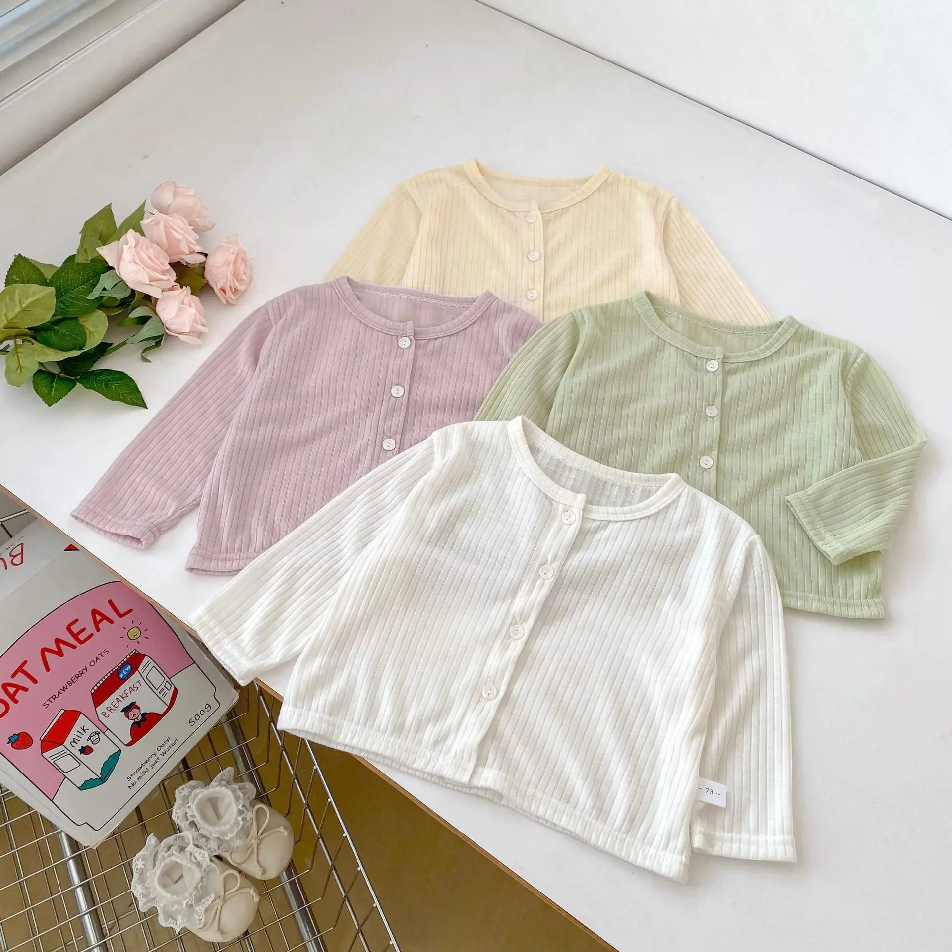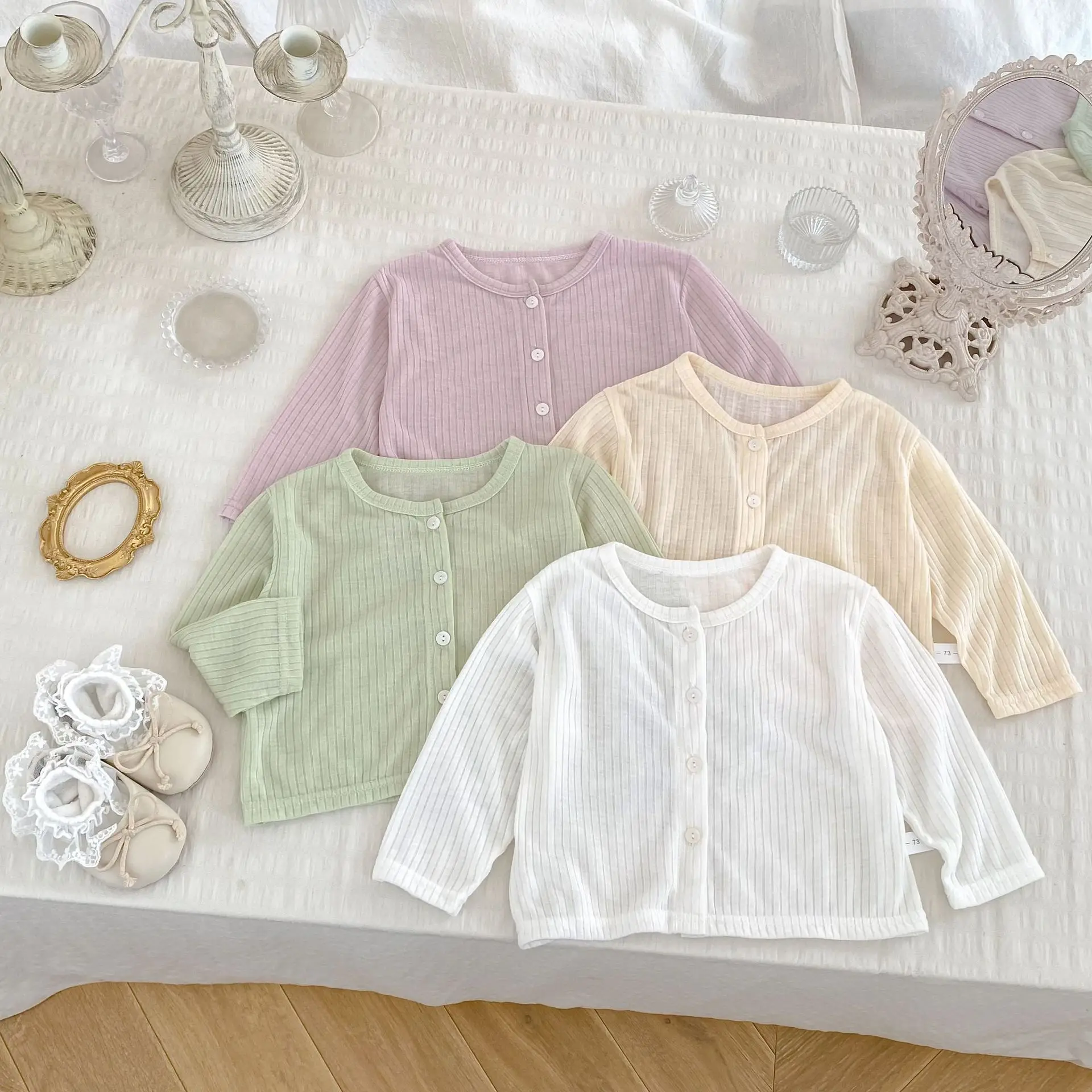 Summer Baby Girl Sunscreen Shirt Solid Color Simple Round Neck Air Conditioning Cardigan Lightweight Breathable Girl's Coat