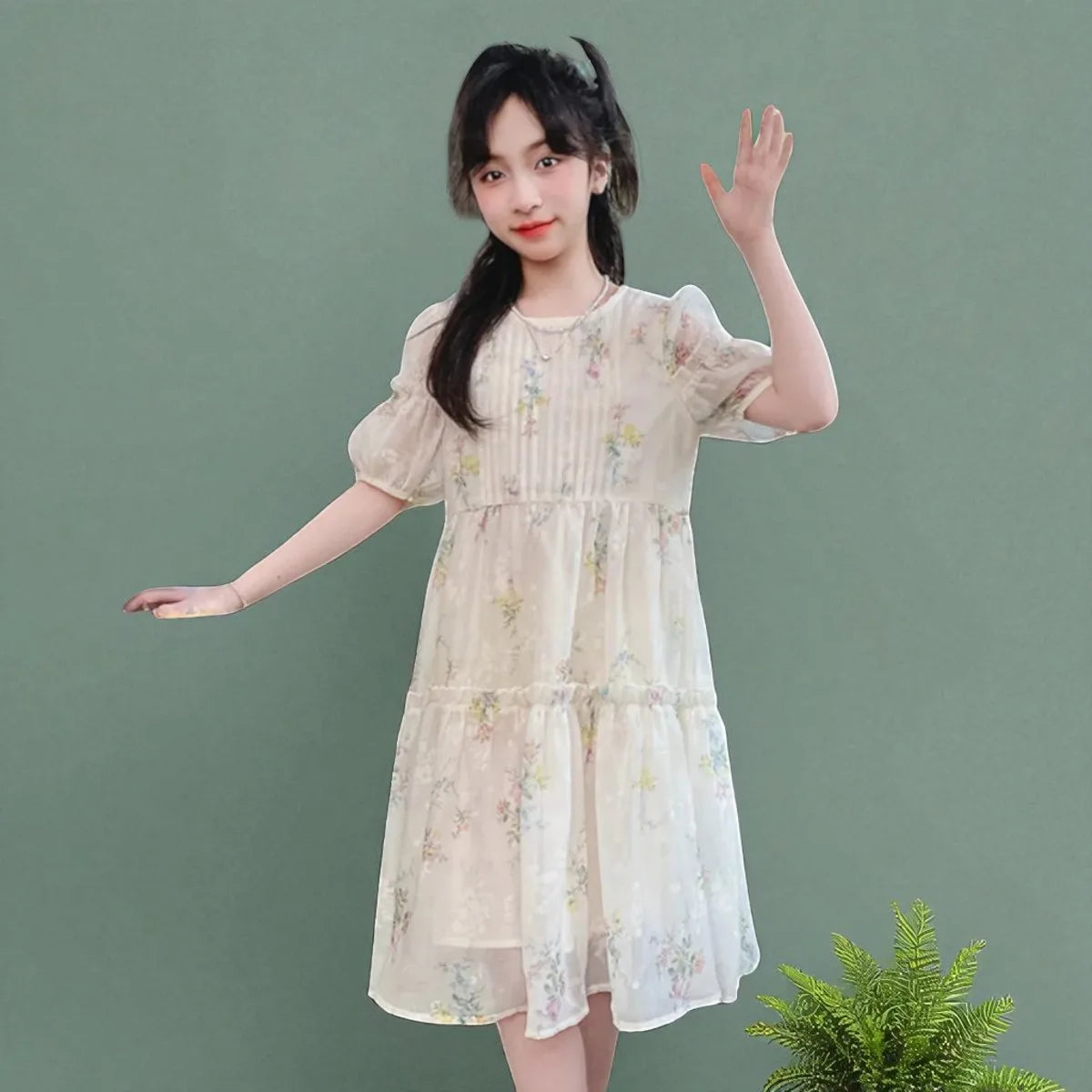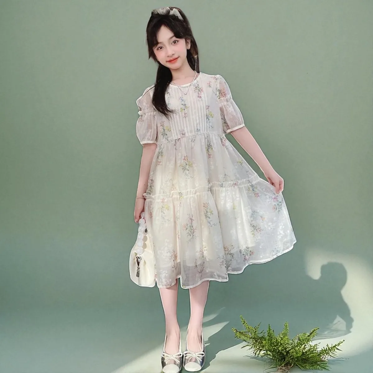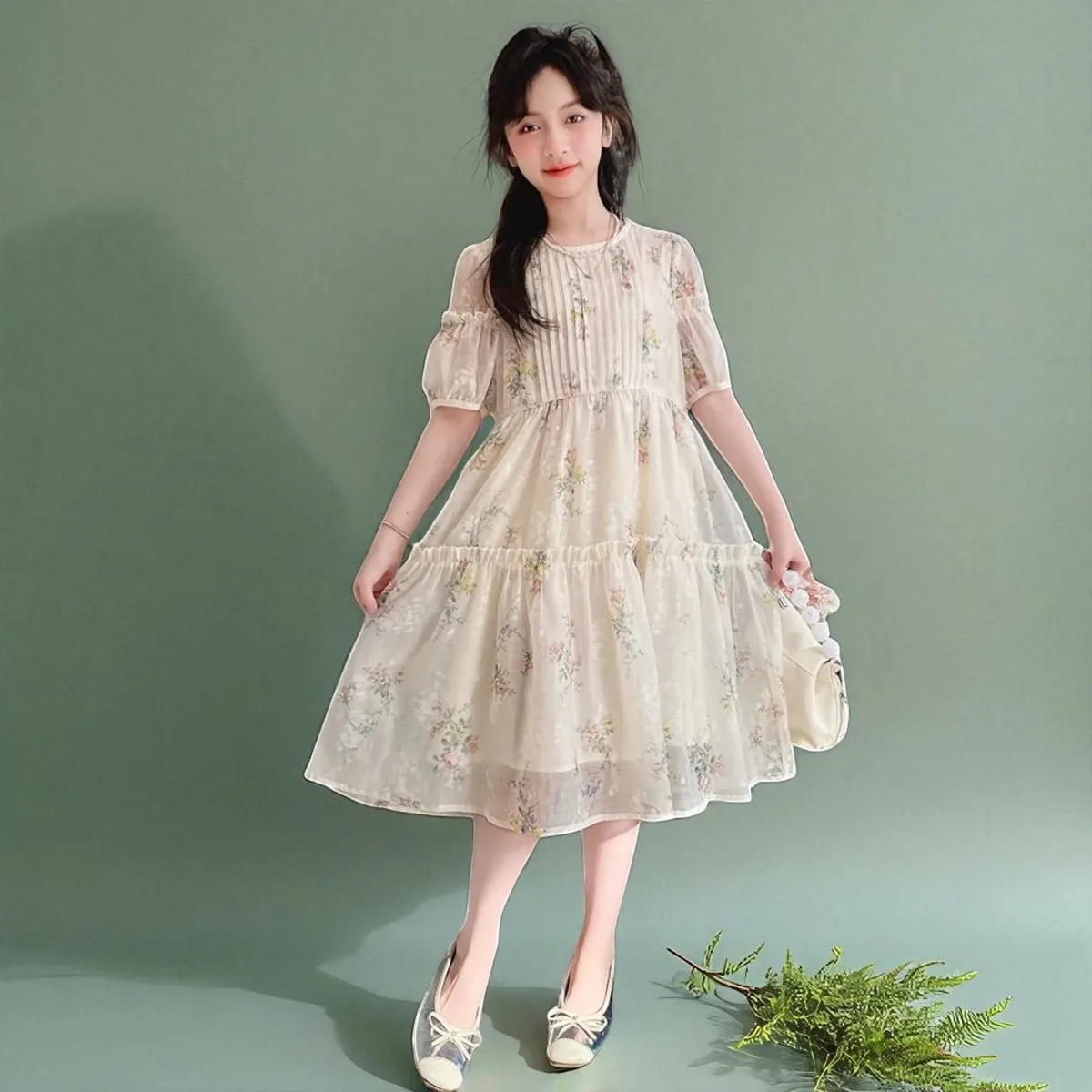 Girls Clothing Dress, Kids Clothing Floral Chiffon Dress for Girls, Girls Dresses Age 3T 4T 5T 6T 7Y 8Y 9Y 10Y 11Y 12Y, Toddler Clothes Summer Dress with Puff Sleeves and Elegant Flower Print, Children's Wear Lightweight Flowy Dress for Girls, Teen Girl Outfits for Spring Summer Fall, Boutique Girls Dresses, Chiffon Girls Clothing for Birthday Party, Daily Wear, School, Picnic, Family Photos, Vacation, Soft Girl Dress for Kids, Ruffle Hem Princess Dress, Toddler Girl Clothes with Floral Design, Fashion Dresses for Tween Girls, Age 3 to 12 Girl Dresses for Summer, Trending Girls Outfit with Pearl Bag Look, Cute Dress for Girls Gift Idea, Modern Casual Children's Clothing
