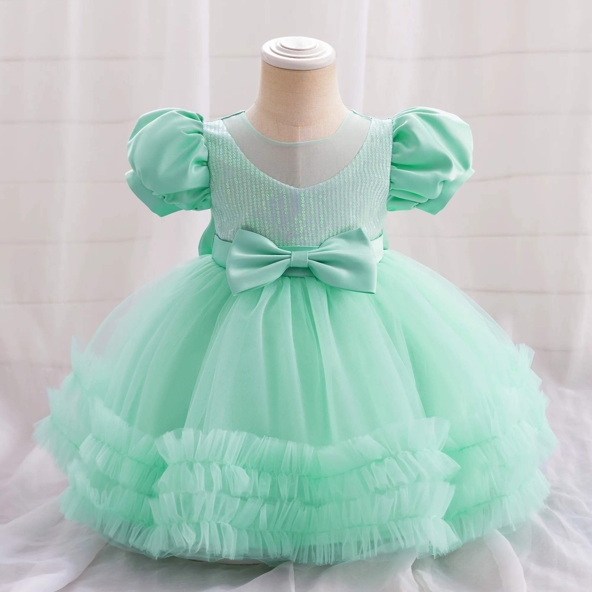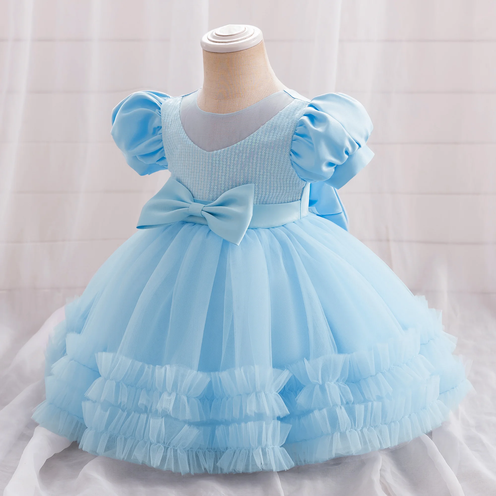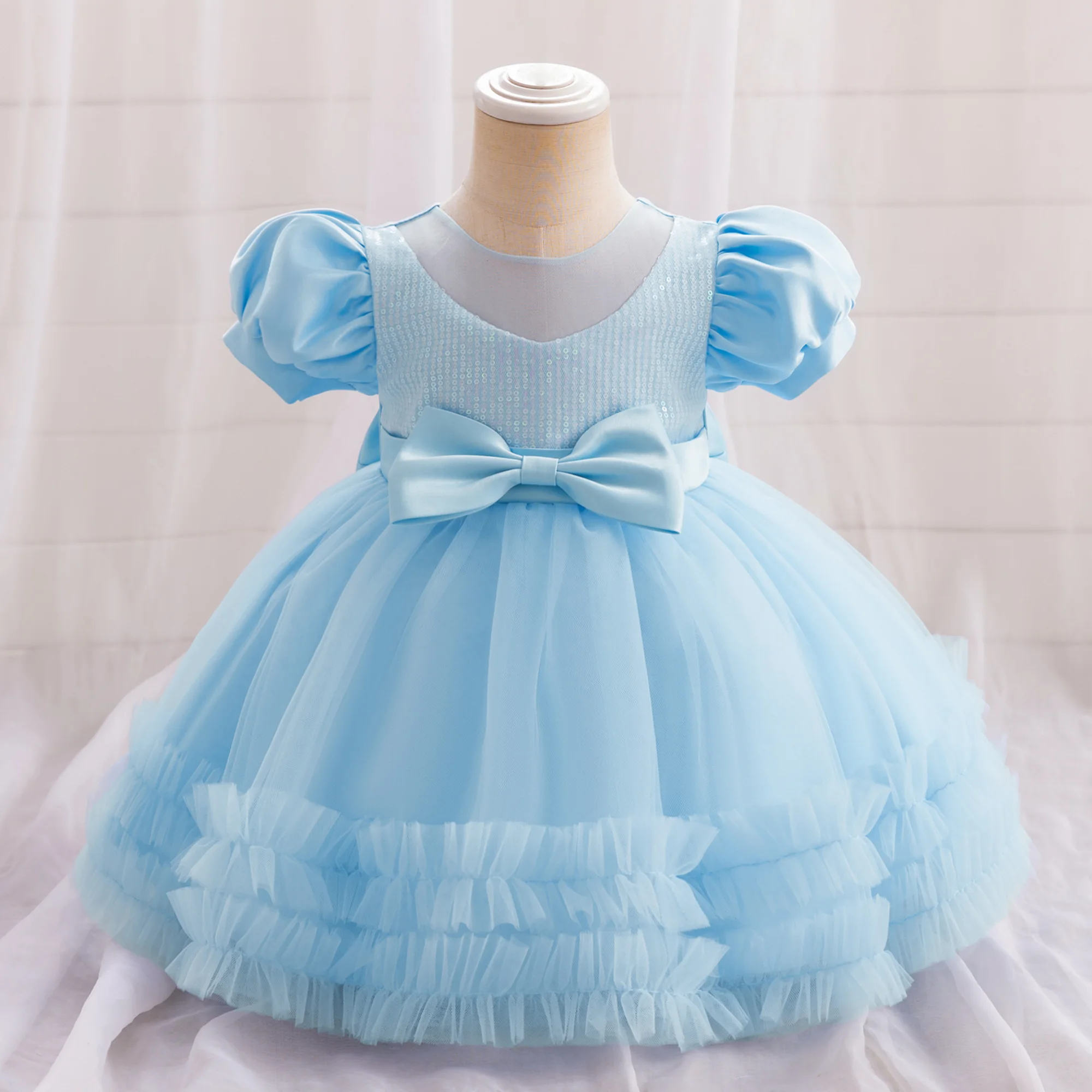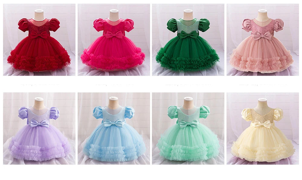 Toddler Sequin Baby Girl Party Dresses Bow Princess Dresses for Girl 1st Birthday Baptism Baby Dress Tutu Lace Wedding Prom Gown