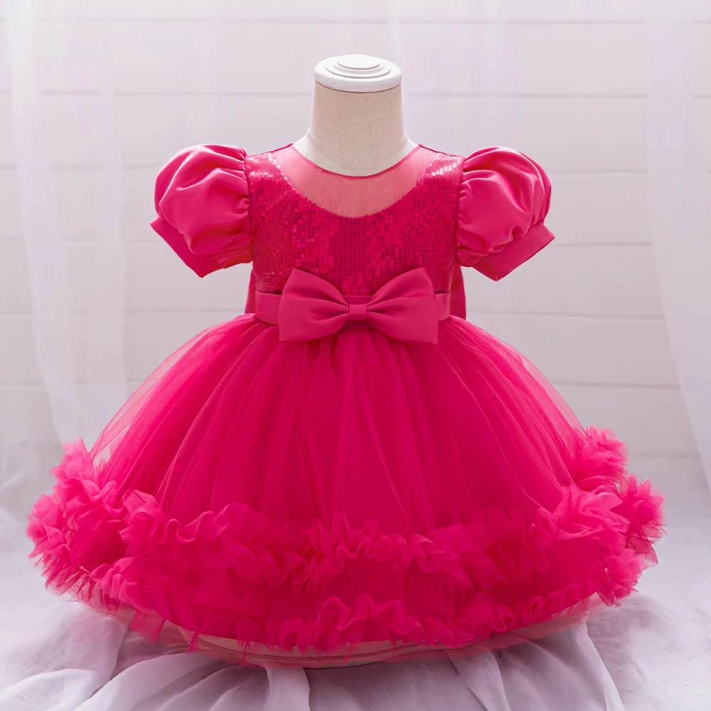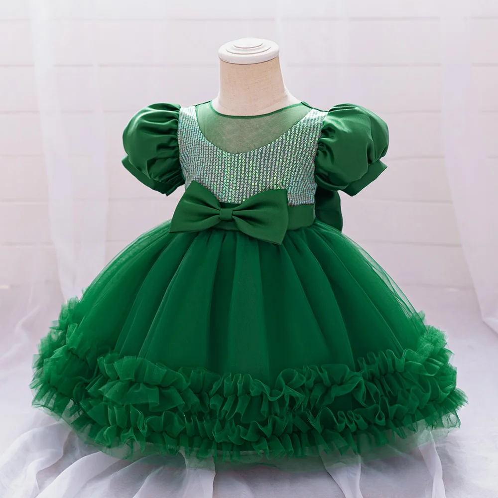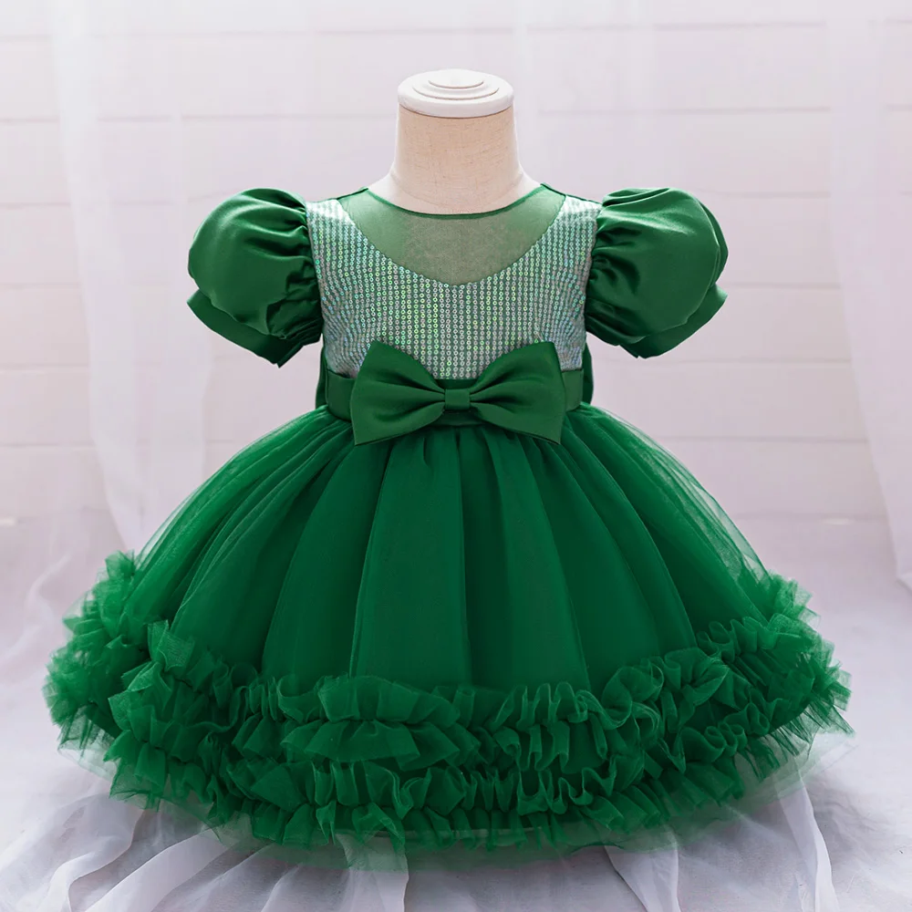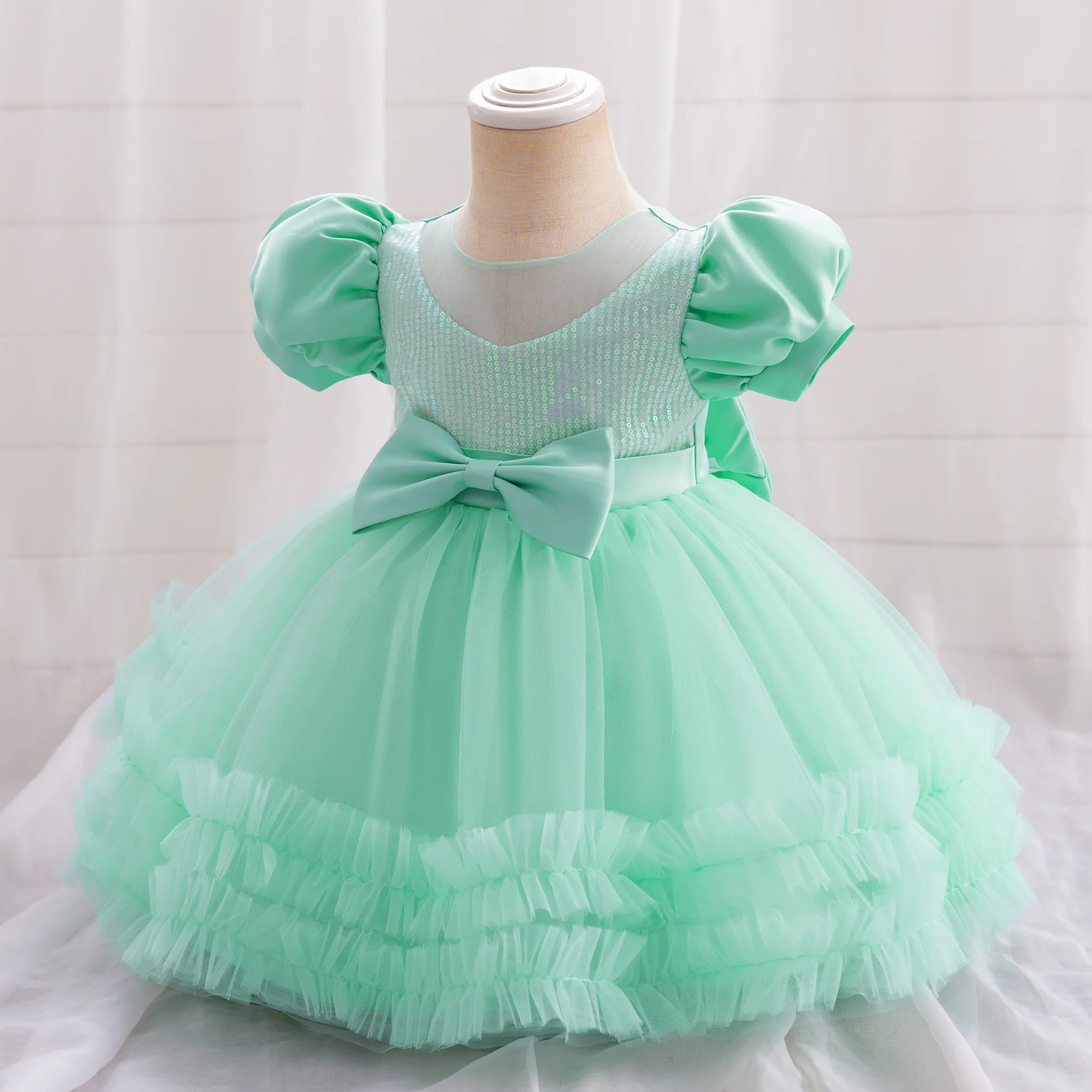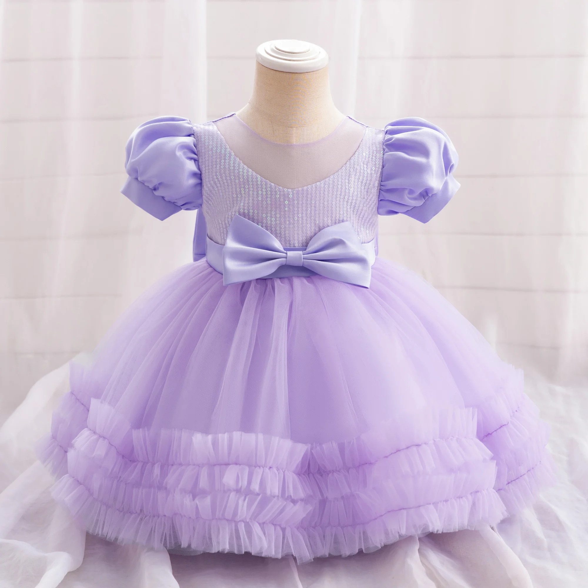 Toddler Sequin Baby Girl Party Dresses Bow Princess Dresses for Girl 1st Birthday Baptism Baby Dress Tutu Lace Wedding Prom Gown