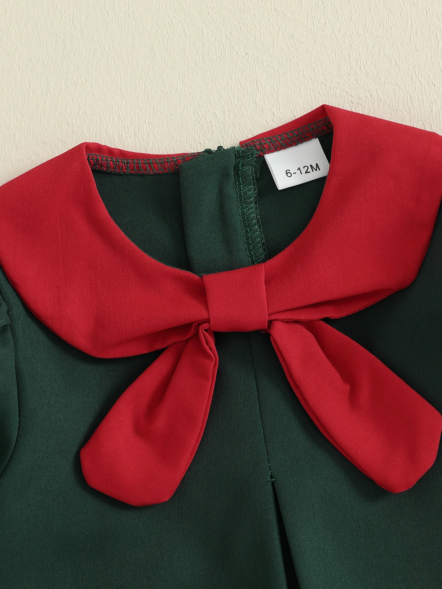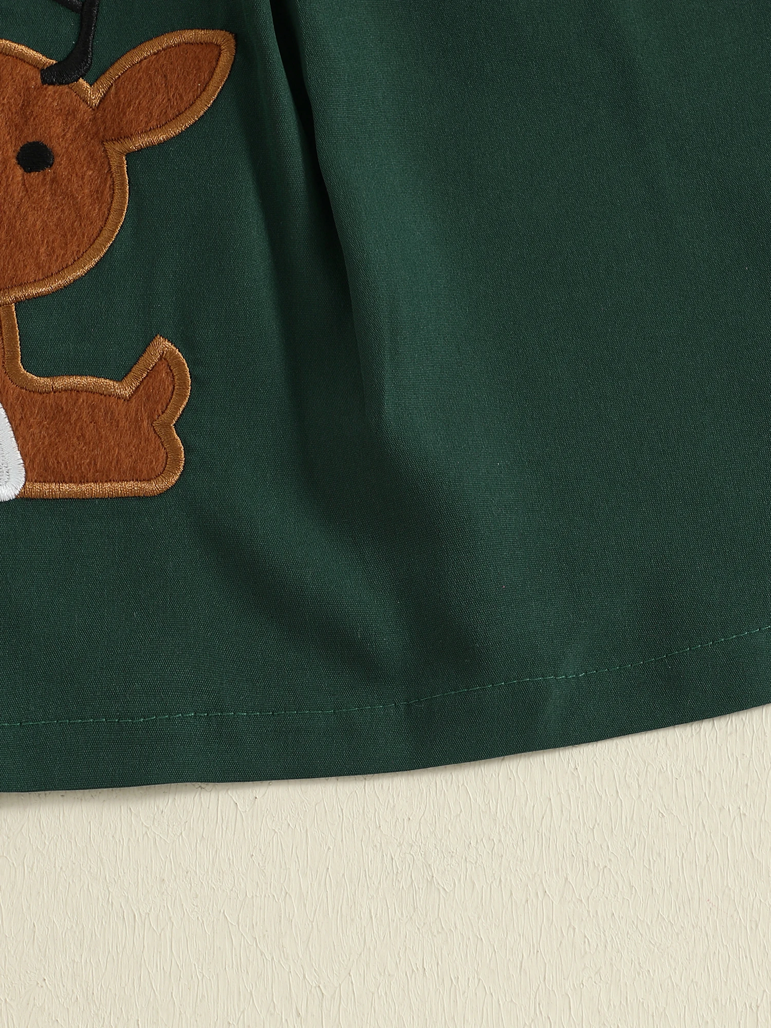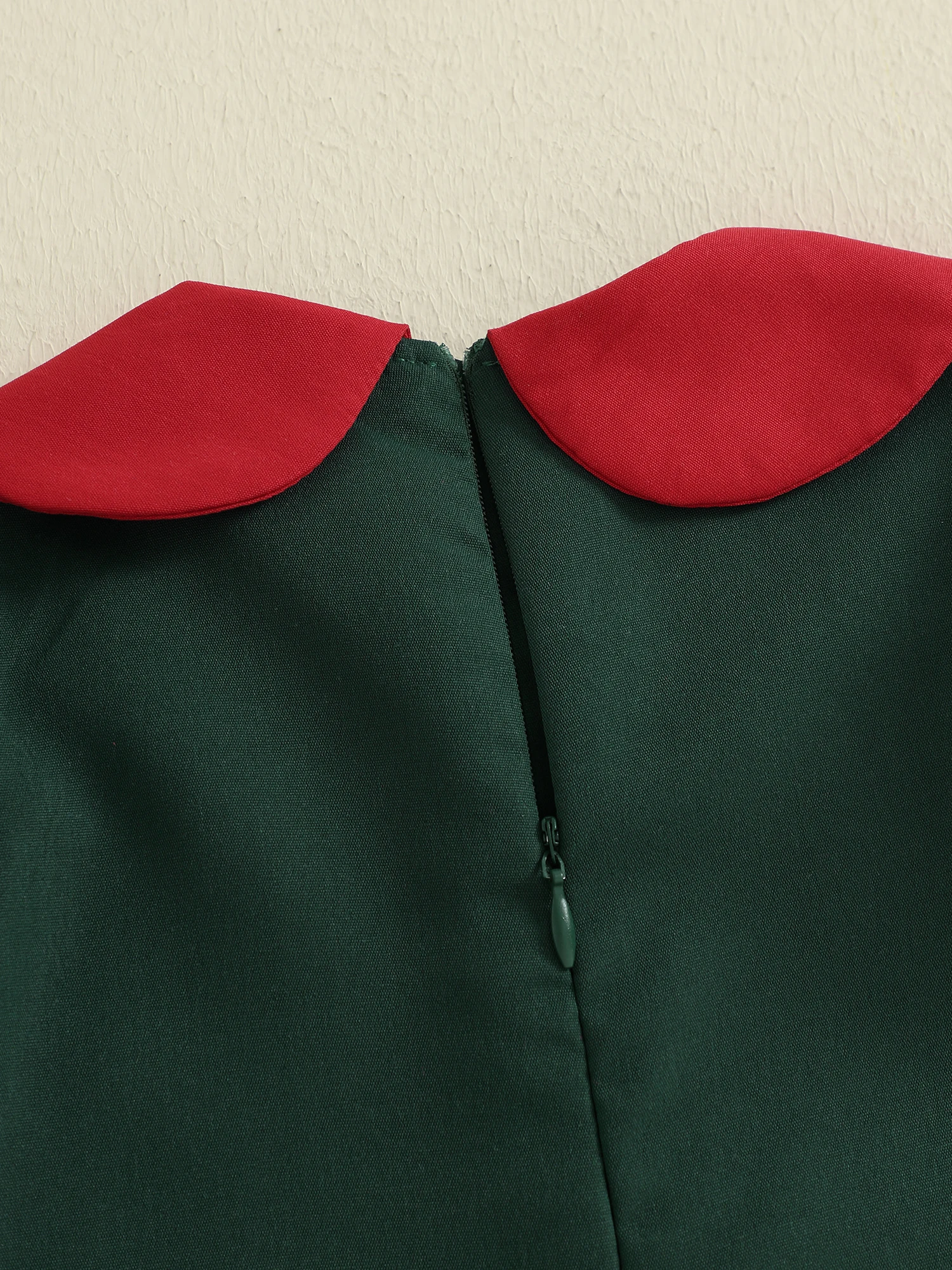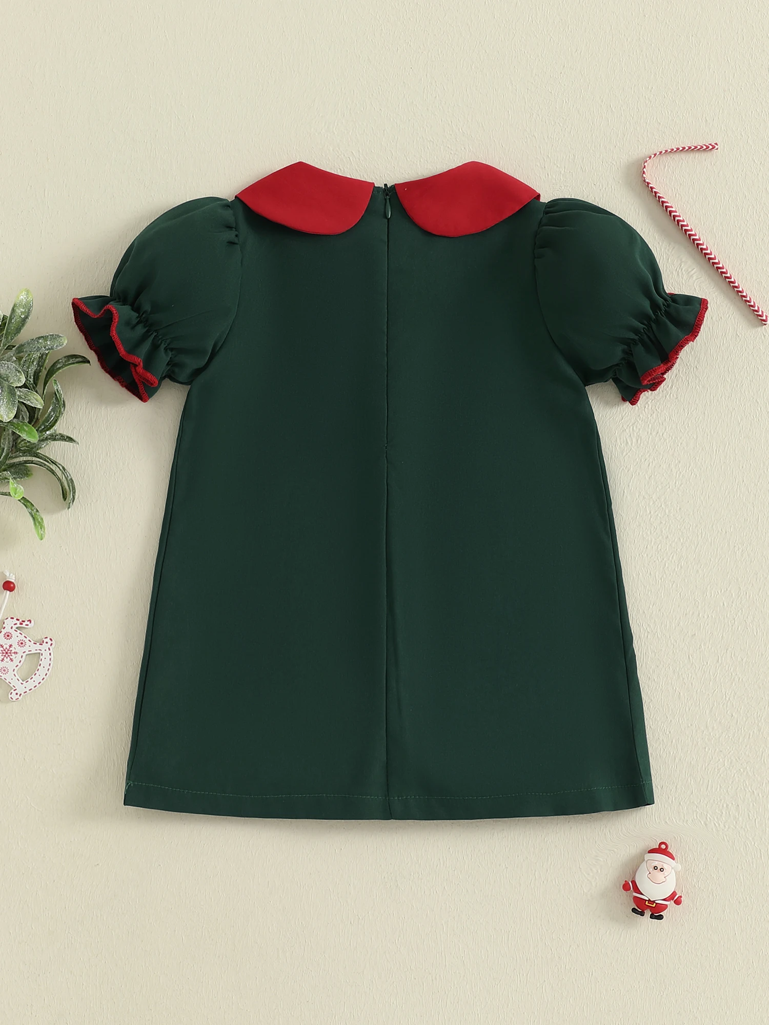 Tregren Toddler Girl Christmas A-Line Dress Reindeer Embroidered Doll Collar Short Sleeve A-line Dress New Year Festival Clothes