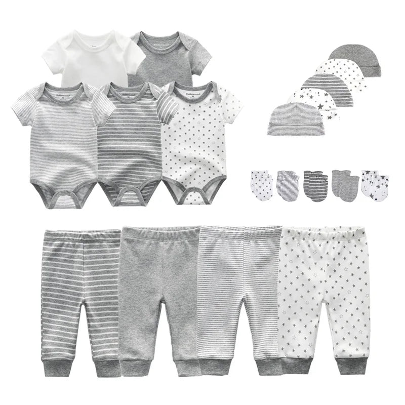 Unisex 2023 Solid Color New Born Baby Girl Clothes Set Bodysuits+Pants+Hats+Bibs/Mittens Cotton Baby Boy Clothes Bebes