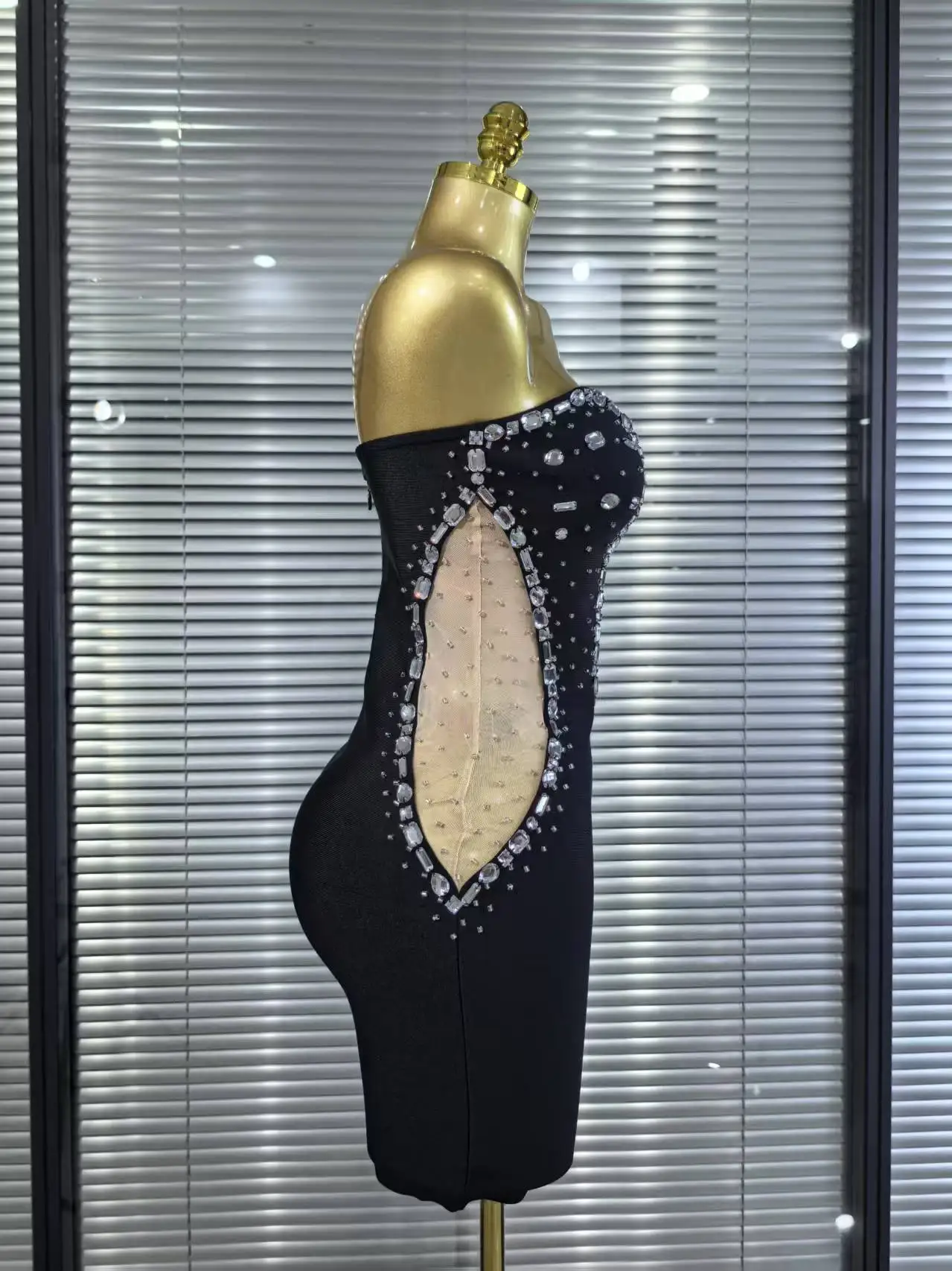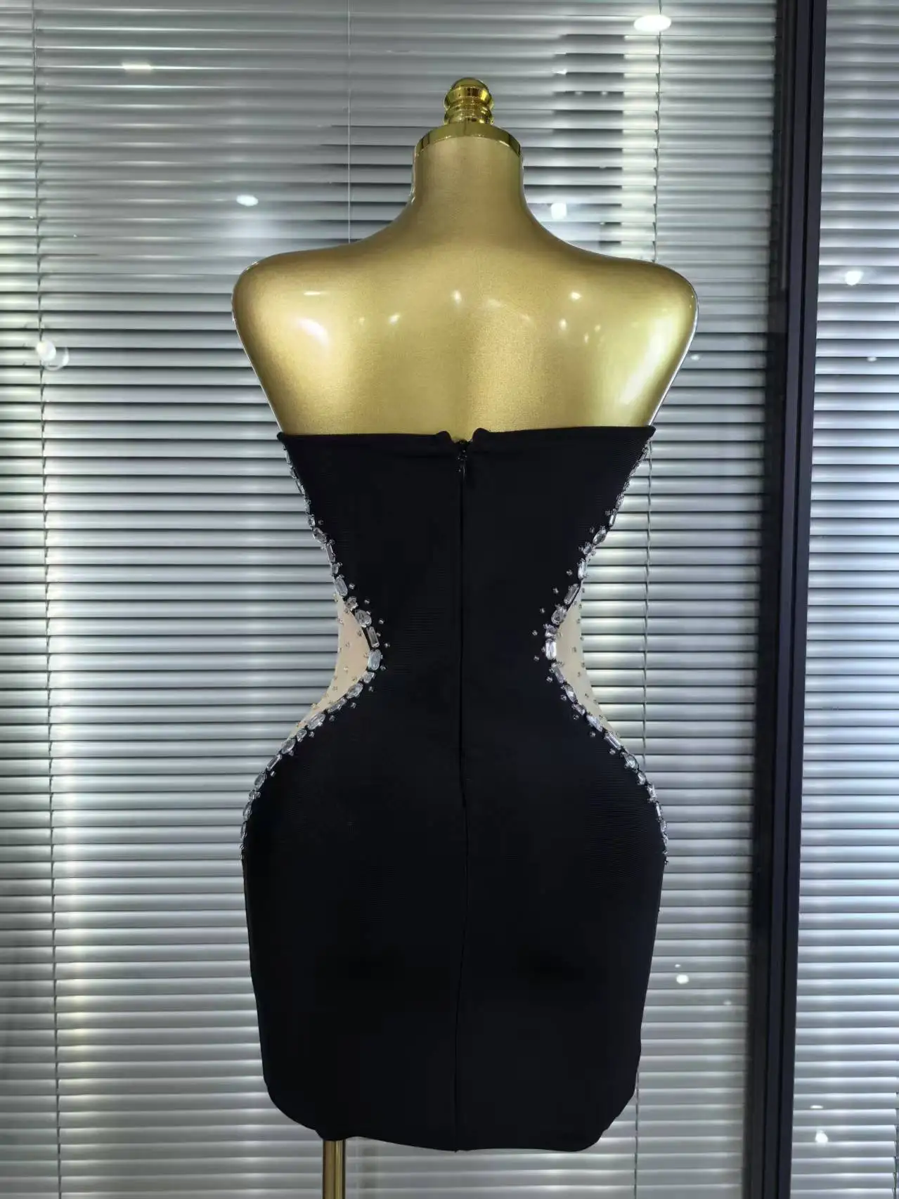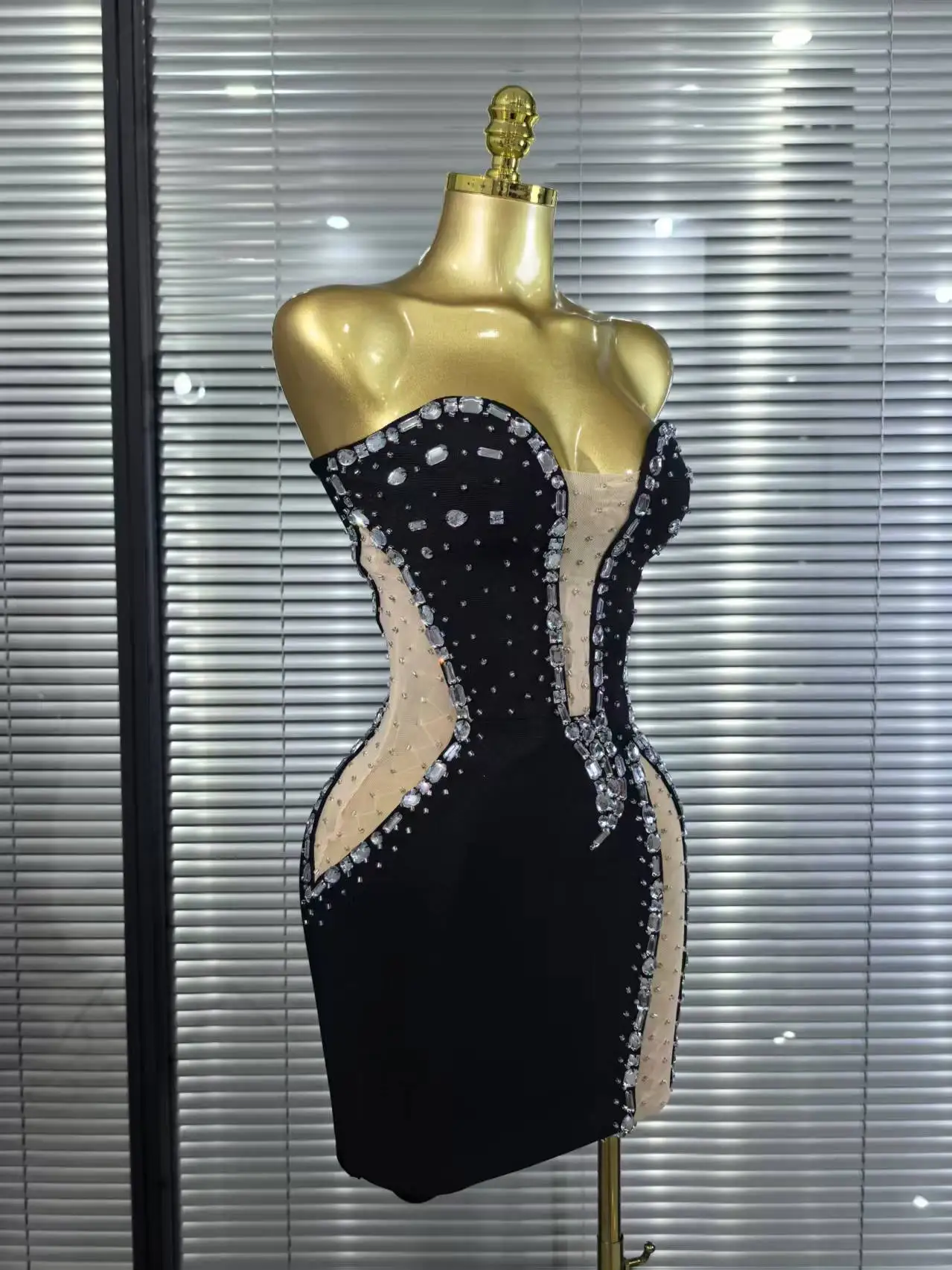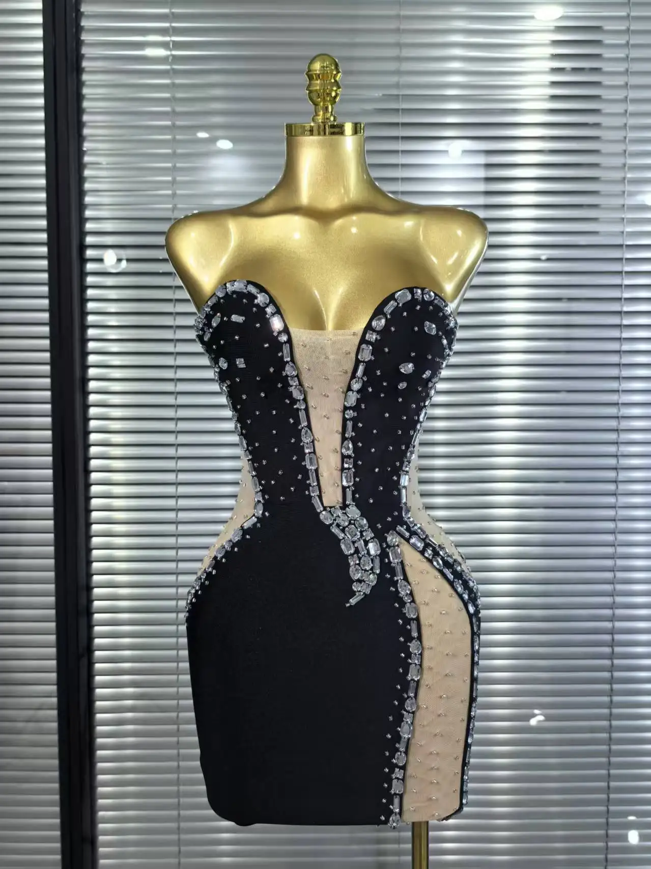 White Black Women Sexy Strapless Shinning Crystal Bodycon Mini Bandage Dress Nightclub Party Celebrate Birthday Cocktail Dress