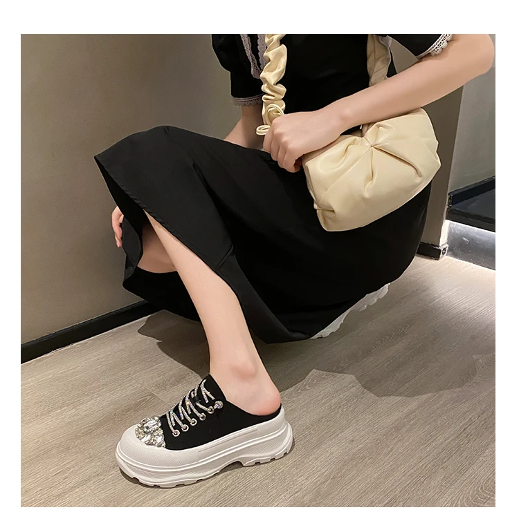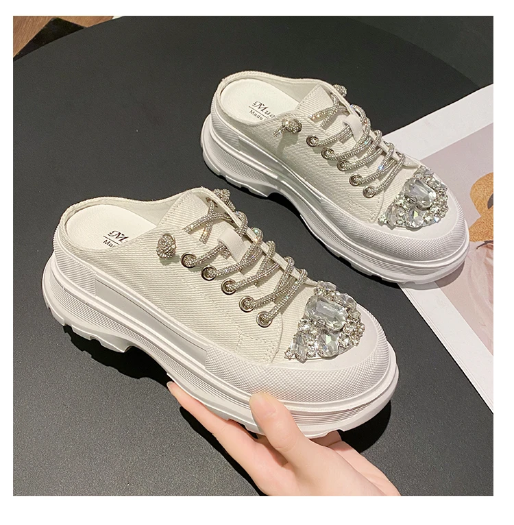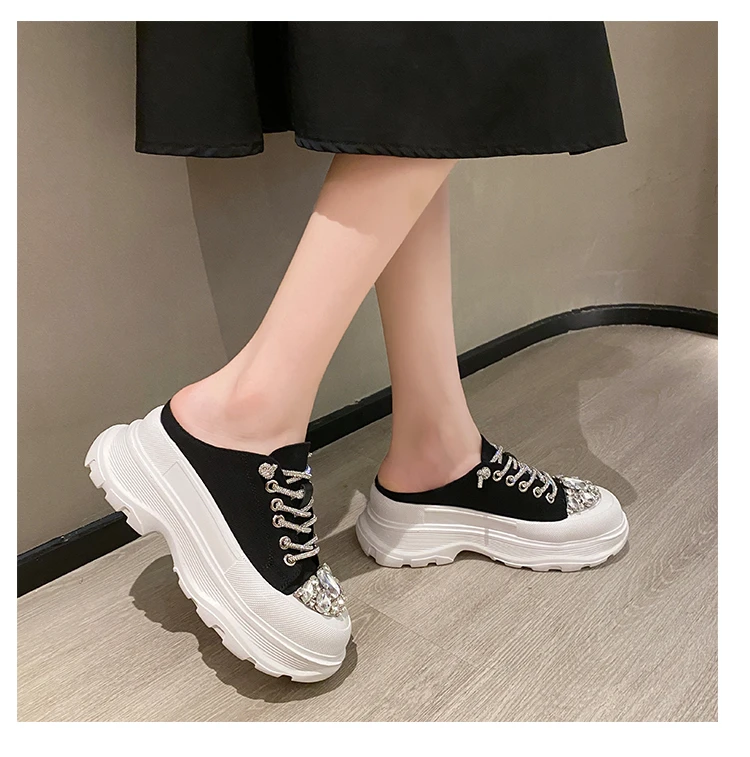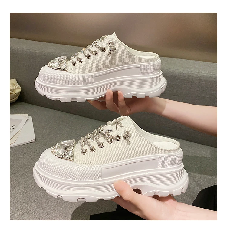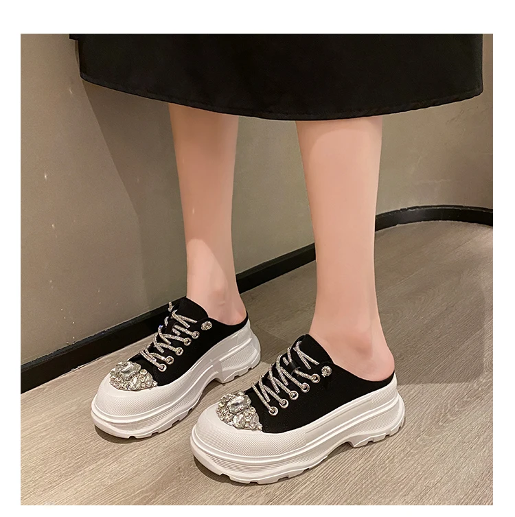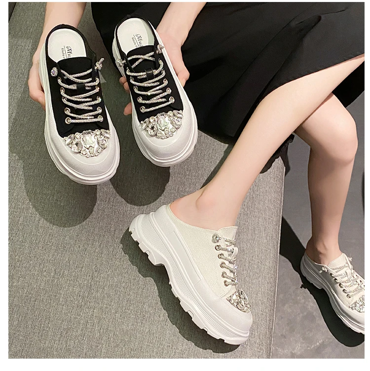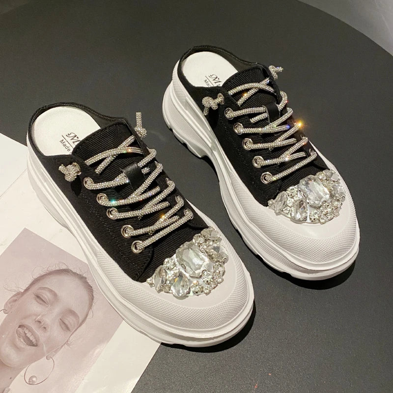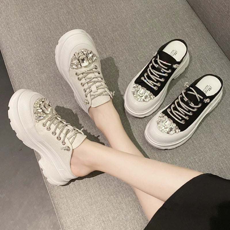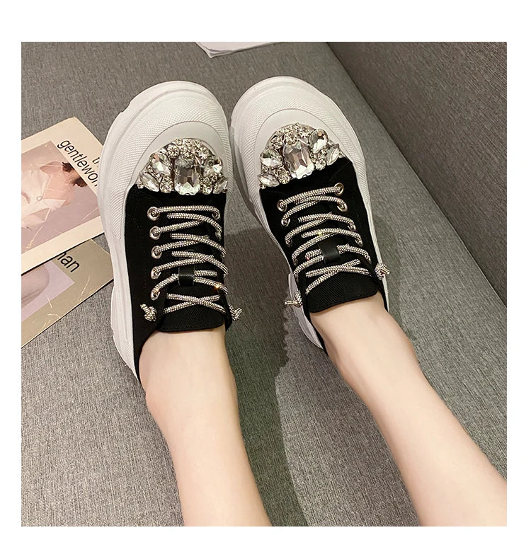 Women Shiny Rhinestones Shoes Four Seasons Casual Sneakers Women Stylish Sport Shoes Lace-Up Sports slippers zapatos mujer