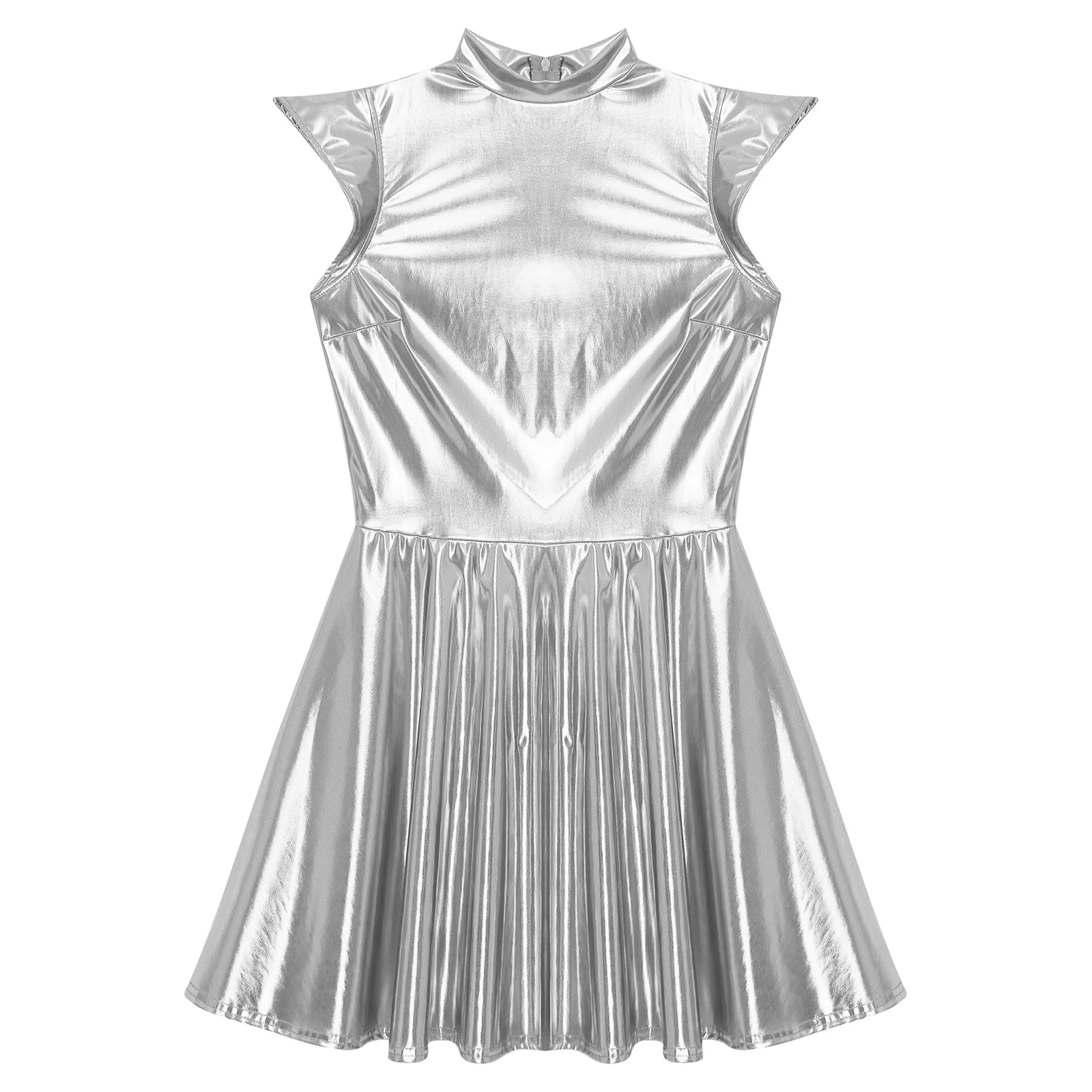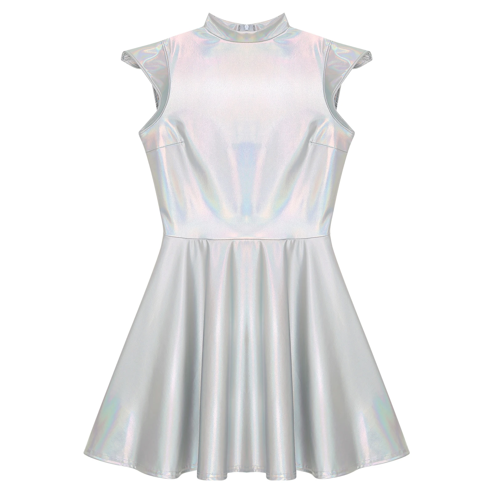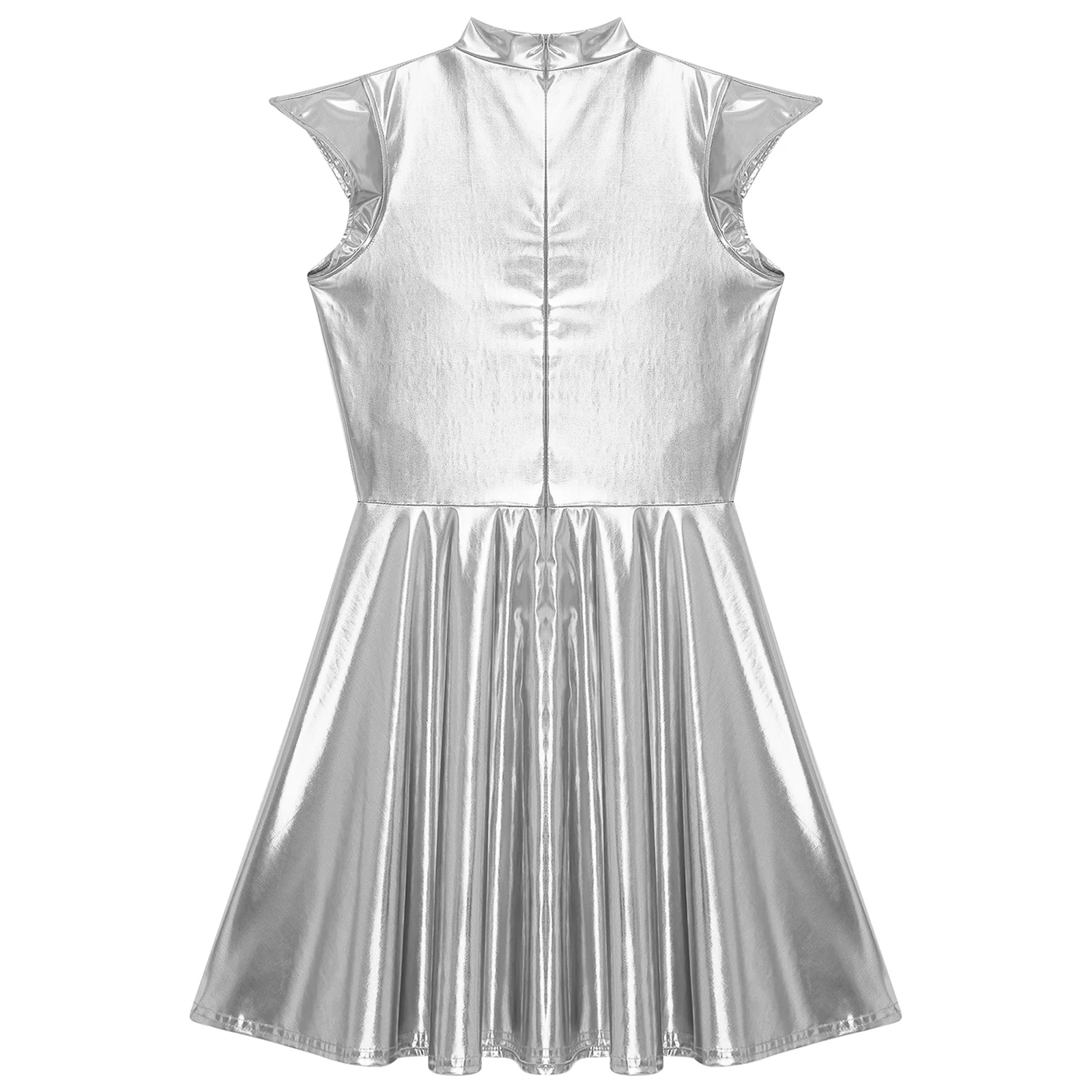 Womens Cocktail Dress Shiny Metallic Dress Alien Space Cap Sleeve High Waist A-line Dress for Halloween Party High Street Dress