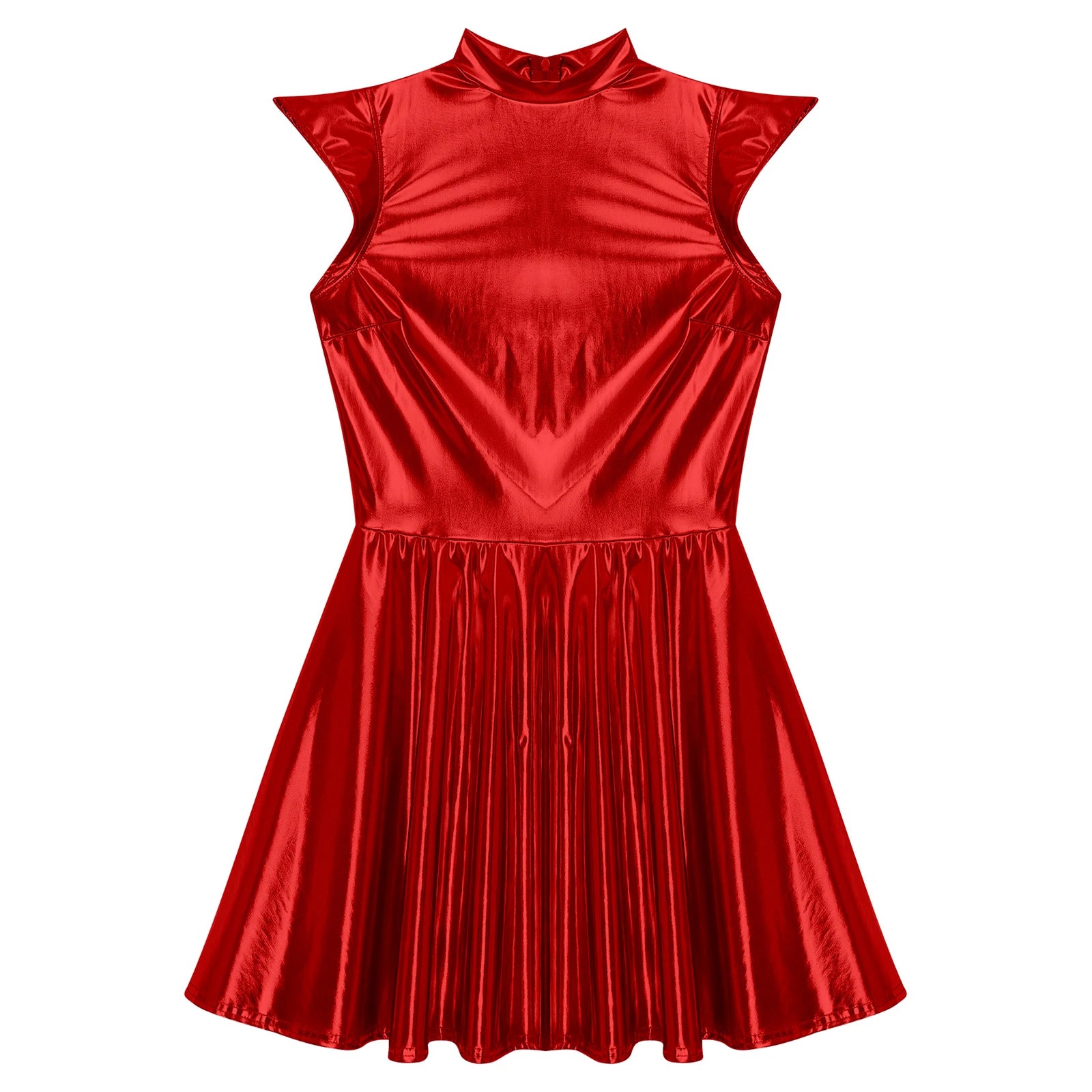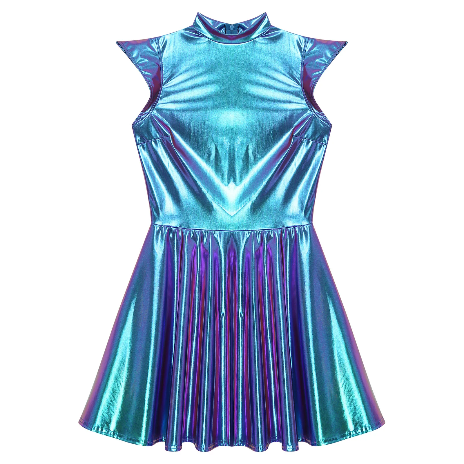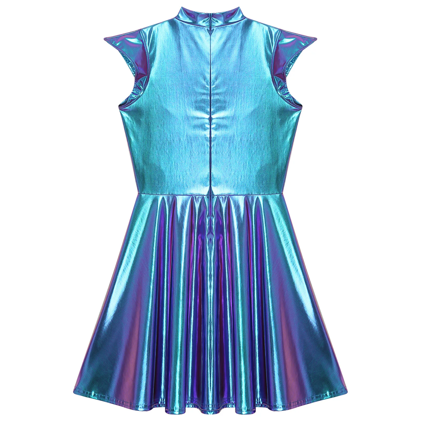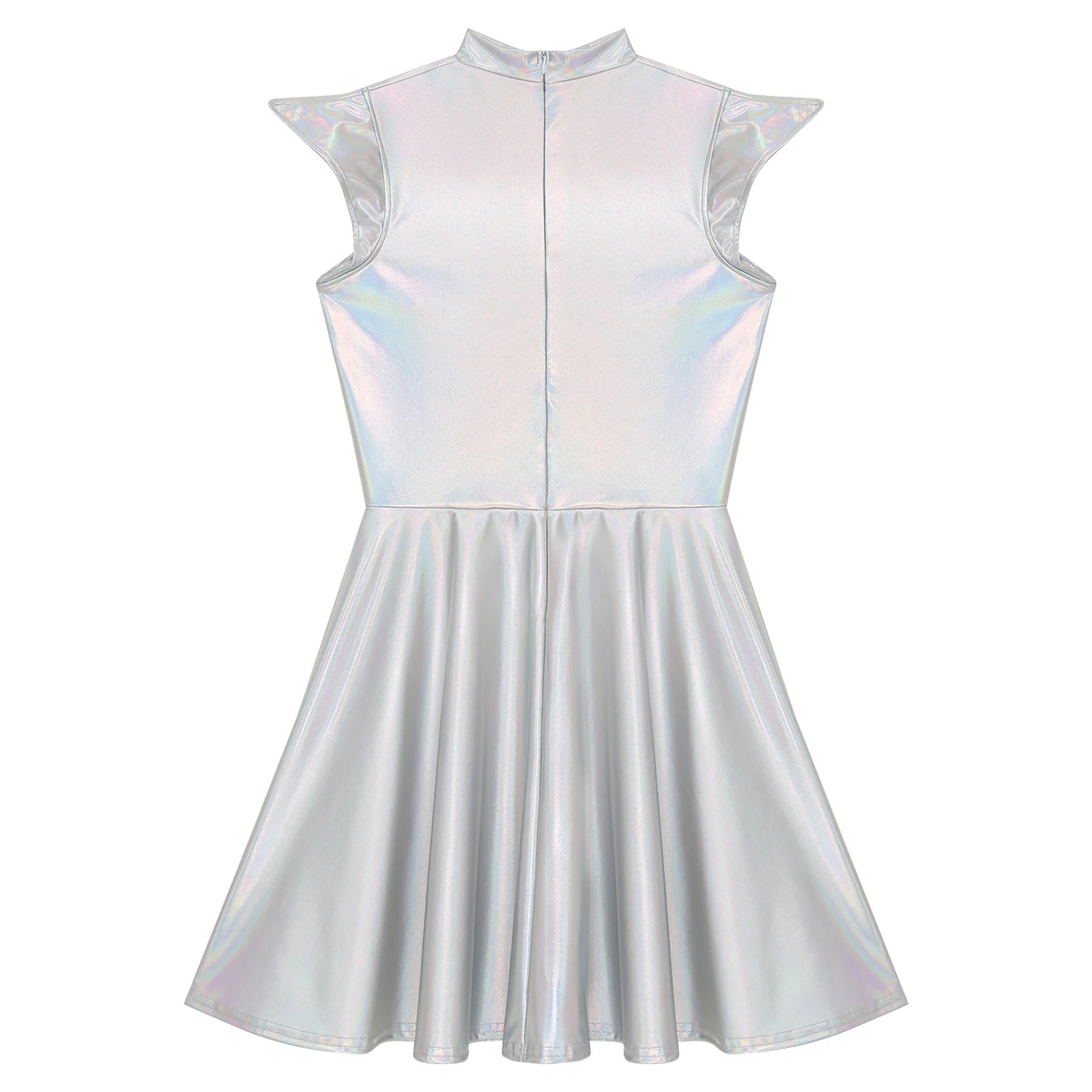 Womens Cocktail Dress Shiny Metallic Dress Alien Space Cap Sleeve High Waist A-line Dress for Halloween Party High Street Dress